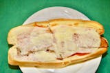 Veal cutlets with traditional marsala wine, mushrooms, butter, & olive oil on a roll.